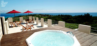 屋上にジャグジー(予約制)があり、海を眺めながらゆっくりできます。